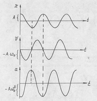 Пусть х = Аcos(ω0t). Тогда скорость υ и ускорение a равны: