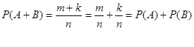 Поэтому число исходов , благоприятствующие событию A+B=m+k.
