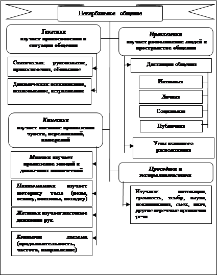 Во всем многообразии выразительных средств невербального общения важнейшее место занимают кинесические, такесические и проксемические средства. Они исследуются специальными областями научного знания, получившими в последние годы бурное развитие – кинесикой, такесикой и проксемикой.
