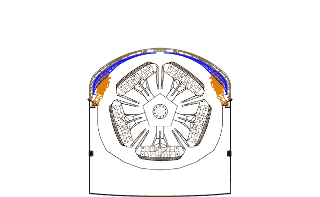 Габариты отсека полезного груза "Бурана" позволяют разместить на каждой вращающейся катапультной установке до пяти боевых блоков, как это изображено на рисунке. С учетом возможного бокового маневра каждого боевого блока при спуске в атмосфере не менее плюс/минус 1100 - 1500 км один ударный модуль мог бы в короткое время своими двадцатью маневрирующими боевыми блоками стереть все живое с лица Земли в полосе шириной до 3000 км.