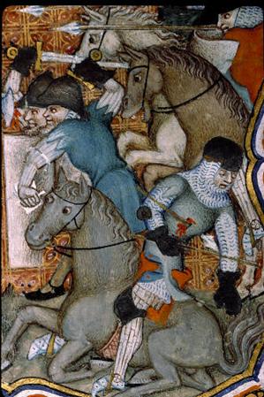 Рис. 2.10. Прототип мюнхенских панцершосс на изображении из Библии Сант-Женевье (1370г.)