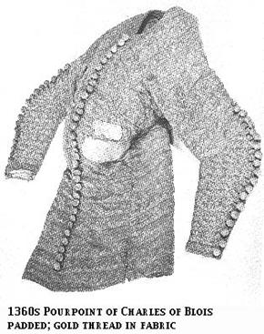 Основным источником данного типа военной одежды служит дублет Карла де Блуа (1364г.), представленный в приложении 2.