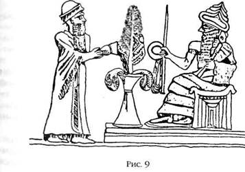 Сооружая «дом Господа Бога» в пустыне, библейский патриарх Моисей действовал в соответствии с подробными указаниями, которые ему дал Господь. Когда царь Соломон строил в Иерусалиме Первый Храм, Бог тоже явился ему во сне, дав «мудрость». Детальный план Второго Храма был показан пророку Иезекиилю в божественном видении мужем, «которого вид как бы вид блестящей меди, и льняная вервь в руке его и трость измерения…» За тысячу лет до него правитель Ура Ур-Намму велел изобразить, как бог приказывает ему построить храм, давая соответствующие инструкции и протягивая измерительную рейку и моток веревки (рис. 9).