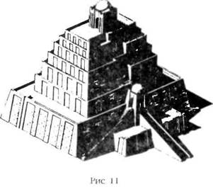Говорят, что войны ускоряют научный и технологический прогресс человечества. В древнем Шумере эту роль, похоже, играло сооружение храмов, способствуя развитию техники, торговли, транспорта, архитектуры и самого общества. Способность осуществлять грандиозные строительные работы в соответствии с заранее разработанным архитектурным проектом, организовывать и обеспечивать необходимым огромное количество рабочей силы, выравнивать площадки и насыпать холмы, обжигать кирпичи и транспортировать каменные блоки, привозить из дальних стран редкие материалы, плавить металл, изготавливать утварь и украшения – все это явно свидетельствует о высокоразвитой цивилизации, уже полностью сформировавшейся в третьем тысячелетии до нашей эры (рис. 11).