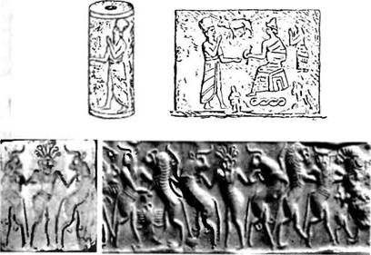 Кроме того, они придумали прообраз современной ротационной печатной машины – цилиндрическую печать. Это был небольшой цилиндр из очень твердого камня с выгравированной зеркальной надписью или рисунком; при прокатывании цилиндра по сырой глине на ней оставалось «позитивное» изображение. Печать также позволяла удостоверить подлинность документов: новый отпечаток можно было сделать на месте и сравнить его с тем, что стоит на документе (рис. 12).