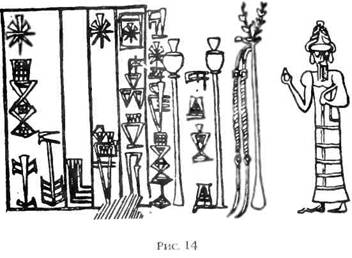 На одной из древних цилиндрических печатей, найденной в Лагаше и принадлежавшей «Урлугаледине, врачевателю», имеется изображение хирургического пинцета. Кроме того, на ней изображена змея на дереве – символ медицины и в наши дни (рис. 14). Часто встречается изображение специального ножа, которым повитухи перерезали пуповину новорожденного.