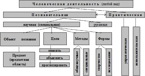 Рис. 1.1 Схема общенаучного представления о человеческой деятельности.