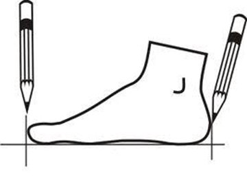 на полученном рисунке проведите линию от большого пальца до пятки и измерьте это расстояние на обеих нарисованных ступнях;