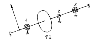 Биметаллические пружины 1, 3 изготовлены из 2-х полосок различных металлов, сваренных между собой. Так как эти металлы имеют различный коэффициент температурного расширения при нагревании пружина деформируется, что приводит к повороту стрелки прибора. Пружина 1 - компенсационная биметаллическая, ТЭ - тепловой экран, 3 - рабочая биметаллическая пружина, 2 - безмоментная токоподводящая пружина.