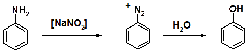 Первичные ароматические амины превращают в фенолы через соли диазония.