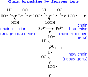 ПОЛ — цепные реакции, обеспечивающие расширенное воспроизводство свободных ра¬дикалов, частиц, имеющих неспаренный элек¬трон, которые инициируют дальнейшее распро¬странение перекисного окисления.