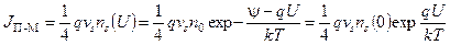 – тепловая скорость электронов, n(0) – концентрация электронов в полупроводнике, на границе полупроводник-металл при U=0.
