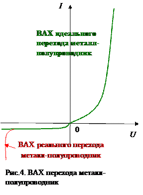 Вольтамперная характеристика перехода металл-полупроводник приведена на рис.4. Экспериментальная зависимость I=f(U) хорошо согласуется с теоретической, т.к.:
