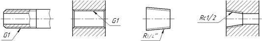Если для метрической резьбы обозначение диаметра резьбы соответствует ее действительному диаметру (без учета допусков), то в трубной резьбе ее диаметр обозначается условно. Поэтому обозначение трубной (и конической) резьбы осуществляется с помощью линии-выноски со стрелкой и полкой (рис. 31).