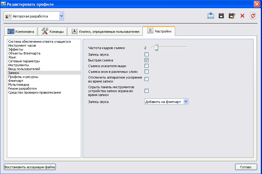 С помощью устройства записи области экрана можно записывать действия, выполняемые на странице флипчарта или в любом другом приложении. Видеозапись сохраняется в файлах формата .avi.