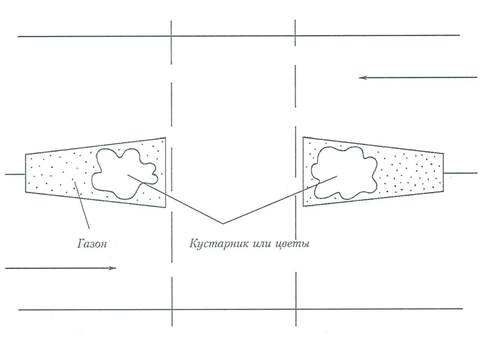 Небольшие газоны необходимы в местах переходов через проезжую часть для безопасности пешеходов, особенно на городских трассах с интенсивным движением транспорта. Газоны послужат в таких местах заметным предупреждением водителям (рис. 20).