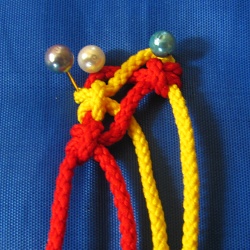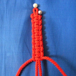 п.1 :Берём за основу левую нить, и наплетаем на неё по очереди гориз.репсовыми узлами 3 оставшихся нити, слева направо.