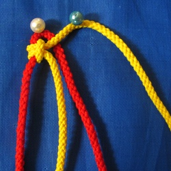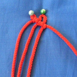 3. Цепочка "хамелеон". Эта цепочка тоже состоит из квадратных узлов, но после каждого узла рабочие нити и основы меняются местами. Если они разного цвета, то такая цепочка получается очень нарядной.