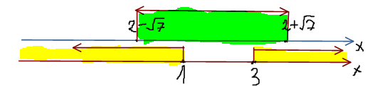 Объединяя решения ( смотрим интервалы, где есть и желтый и зеленый цвета), записываем ответ: