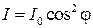 выражает закон Малюса: интенсивность света I, проходящего через поляризатор, равна интенсивности I0 падающего поляризованного света, умноженной на квадрат косинуса угла j между плоскостью, в которой колеблется вектор