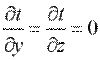 где t — температура тела; х, у, z — координаты точки; τ — время. Такое температурное поле называется нестационарным и отвечает неустановившемуся режиму теплопроводности. Если температура тела не изменяется с течением времени, то температурное поле называется стационарным. Тогда