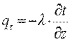 Здесь множитель λ называется коэффициентом теплопроводности. Знак минус указывает на то, что теплота передается в направлении уменьшения температуры. Количество теплоты, прошедшее в единицу времени через единицу изотермической поверхности, называется плотностью теплового потока: