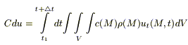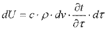 Приращение внутренней энергии можно выразить через массу параллелепипедаρ·dv, теплоемкость с и приращение температуры