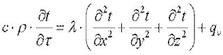 ) и отсутствии внутренних источников теплоты (qv=0) дифференциальное уравнение теплопроводности примет вид: