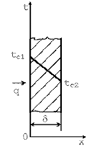Рассмотрим однородную плоскую стенку толщиной δ (рис. 9.2). На наружных поверхностях стенки поддерживаются постоянные температуры tс1 и tс2. Коэффициент теплопроводности стенки постоянен и равен λ. При стационарном режиме (