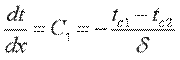 Постоянные С1 и С2 определим из граничных условий: при x=0 t=tc1, С2=tc1; приx=δ t=tc2=С1·δ+tc1, отсюда