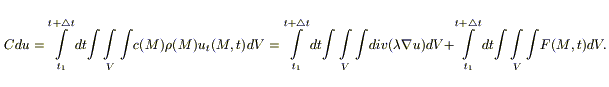 В основу вывода положен закон сохранения энергии, согласно которому вся теплота, выделенная внутренними источниками dQвн и внесенная извне в элементарный объем путем теплопроводности dQm за время dτ, идет на изменение внутренней энергии вещества, содержащегося в этом объеме: