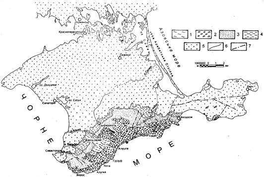 Рис. 2.1 Схематическая геологическая карта Крымского полуострова: