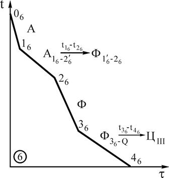 | Рис.8. Кривая охлаждения, фазовые реакции и схемы структур сплава 6 |