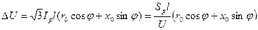 Для разветвленной сети потери напряжения по участкам ΔUi определяются, исходя из общих допустимых потерь напряжения ΔUд по формуле: