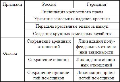 Важнейшим звеном реформы 60-70-х гг. стала отмена крепостного права. Содержание данной реформы, изложенное в Положении 19 февраля 1861 г., сводилось к следующему: крепостные крестьяне объявлялись лично свободными без всякого выкупа, они получали от помещика надел, за что продолжали отбывать барщину или оброк, то есть становились временно обязанными. Крестьяне могли выкупить не только усадьбу, но и по взаимному соглашению с помещиком и полевую землю, используя для этого казенную ссуду. По завершении выкупа прекращался вотчинный надзор помещика над крестьянами, заканчивалось их состояние временно обязанных, крестьяне переходили в положение свободных собственников. Отношения между помещиком и крестьянами опосредовались общиной, которая, в частности, коллективно оплачивала в течение 49 лет выкупную ссуду, предоставленную государством. Выходя из крепостной зависимости, крестьяне оставались в общине, получали известное самоуправление и сообща несли повинности перед государством. Иначе говоря, реформа основывалась на продлении и консервации полуфеодальных отношений. Выкуп был своеобразной формой феодальной ренты. Он даже формально исчислялся от суммы оброка: за надел нужно было платить такую сумму, которая будучи положена в банк дает помещику в виде процентов оброчный платеж. В обуржуазивании аграрного сектора, которое стало главным следствием крестьянской реформы, были как сходства с прусским путем развития сельского хозяйства, так и отличия.