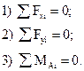 ). Для построения эпюр определение этих реакций не является безусловной необходимостью: расчет, как и в случае жесткозащемленной балки, можно вести от свободного конца, то есть всякий раз так выбирать отсеченную часть для рассматриваемого сечения, чтобы в нее не попадала опора с неизвестными опорными реакциями. Тем не менее, иногда целесообразно вычислить опорные реакции. Это позволяет проверить построение эпюр или облегчить их построение. Для вычисления реакций в жесткозащемленной раме используются три условия равновесия: