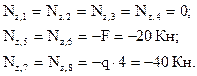 (знак "-" указывает на сжатие в этих сечениях с силой