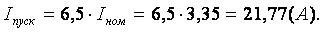 Определим величину пускового тока из известного по условию задачи соотношения Iпуск/Iном = 6,5: