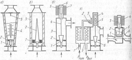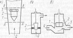 Расходомеры обтекания, применяемые для измерения расхода жидкостей и газов, имеют несколько разновидностей. Наиболее распространенные из них приведены на рис. 7.16.