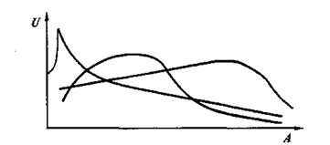 Рис. 4-2. Отношение индивида к расходам на образование. Е- величина расходов, U- значение индивидуальной функции полезности.