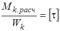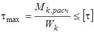 Здесь s , tmax , smax – максимальные расчетные напряжения в детали; Nрасч , Mк.расч , Mх.расч – максимальные по абсолютному значению нормальная сила, крутящий момент, изгибающий момент в поперечном сечении; F, Wк , Wх – площадь, момент сопротивления кручению и момент сопротивления изгибу поперечного сечения.