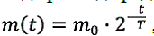 где mo(мг) - начальная масса изотопа, t(мин) - время, прошедшее от начального момента,Т (мин) - период полураспада. В начальный момент времени масса изотопа m0=100мг. Период его полураспада Т = 5мин. Через сколько минут масса изотопа будет равна 12,5мг.