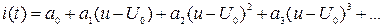 Приложено к нелинейному элементу, вольтамперная характеристика которого в окрестности рабочей точки аппроксимирована полиномом Тейлора вида:
