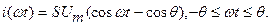 Параметр θ (в радианах или градусах), при котором ток изменяется от максимального значения Im до нуля, называется углом отсечки. Изменение фазы, соответствующее длительности полного импульса тока на выходе цепи, равно 2θ. Из графиков рис.10.3 нетрудно определить, что при фазовом угле ωt=0 напряжение начала характеристики
