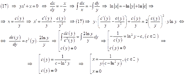 в первое уравнение системы (13), а затем проинтегрировать это ДУ как ДУ с разделяющимися переменными. Так будет найдено общее решение этого ДУ: