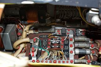 Основным распределительным устройством постоянного тока, куда подключаются все источники электроэнергии постоянного тока является специальная текстолитовая панель, расположенная за приборной доской. На рис. 1 показана текстолитовая панель с открытой центральной приборной доской пилота.