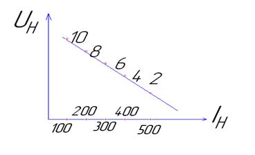 Внешняя характеристика АБ- зависимость напряжения по нагрузке от тока нагрузки