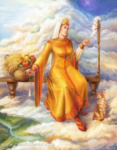 Макошь - богиня плодородия, земли, урожая, судьбы, покровительница женских ремёсел, покровительница рожениц. Такое множество функций может исполнять одна женщина, хозяйка дома, от которой зависела раньше судьба домочадцев. Родить, воспитать, накормить, одеть, позаботиться обо всех, кто в доме. Дождаться, пока вырастут дети, женить их и пестовать внуков - вот самый длинный и урожайный для женщины период. Время пожинать плоды лета. Богиня Макошь не ласковая и не веселая, слишком много у неё забот о своём доме и порядке мироустройства в нём. Так и женщина в период осени- хлопотлива, может и прикрикнуть, а может вдруг и достать из многочисленных сундуков неожиданную помощь недотёпе- домочадцу.