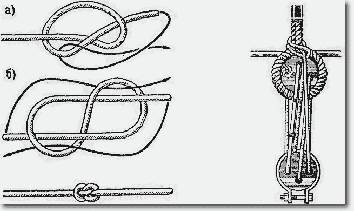 На схеме даны два способа его вязки. Первый способ (а.), основанный на простом узле, предусматривает ввод ходового конца в петлю снизу между коренным и ходовым концами с последующим пропуском его под себя. Второй способ вязки юферсного узла (б.) предусматривает завязывание восьмерки и протаскивание обоих концов в соответствующие ее петли, как это показано двумя стрелками. Этот старинный морской узел во времена парусного флота применялся для натягивания вант с помощью тросовых талрепов и юферсов. Его вязали на конце талрепа, чтобы последний задержать в отверстии юферса.