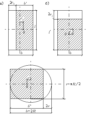 | Рис.Ф.11.4. Схемы для определения приведенных размеров подошвы фундамента: а - прямоугольного; б - круглого |